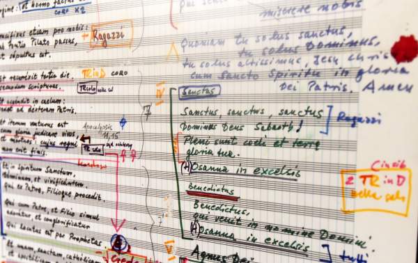 At the European Centre for Music in Lusławice, one can see a gallery of Penderecki’s manuscripts, which includes his personal notes, sketches, and objects such as crayons he used to write his works. This exhibition provides a unique insight into the composer’s creative process and his approach to musical notation.
